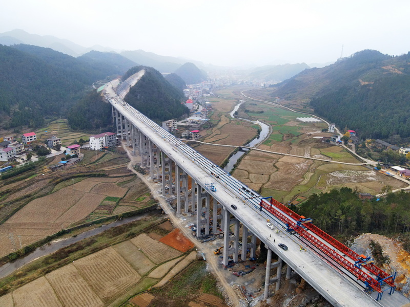 為確保橋梁架梁工作順利進(jìn)行,全體建設(shè)者前瞻謀劃、科學(xué)部署:一是聯(lián)合各參建單位力量,深入項(xiàng)目施工一線,摸清現(xiàn)場(chǎng)實(shí)際情況,著力優(yōu)化施工組織設(shè)計(jì),完善施工技術(shù)方案,通過(guò)主動(dòng)防護(hù)與被動(dòng)防護(hù)相互協(xié)同,輔以高大擋墻施工措施,構(gòu)筑高效、安全的施工作業(yè)平臺(tái)。二是強(qiáng)化同地方各單位的溝通交流,積極協(xié)商桿線遷移方案,圍繞征拆重點(diǎn)、難點(diǎn),細(xì)化工作任務(wù),努力達(dá)成意見(jiàn)共識(shí),扎實(shí)做好地方群眾思想工作和協(xié)調(diào)服務(wù)工作,穩(wěn)步推進(jìn)征拆協(xié)調(diào)工作。三是合理調(diào)配資源,持續(xù)加大設(shè)備、材料、人員投入,巧用“大小鉆頭”聯(lián)合成孔工藝,全面縮短橋梁樁基施工周期,此外,調(diào)度兩臺(tái)架橋機(jī)同步作業(yè),著力加快T梁架設(shè)工作步伐。